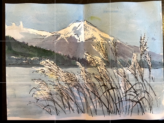 My muse – Mt Fuji. We’ve recently been travelling in Japan and Hong Kong and the trip was a feast of beautiful views and a source of so much inspiration. Over the next few months I’m going to share my creative journey. This is to show how valuable it is to have a daily routine drawing, sketching and painting. How I develop an idea from a thought into a collection of paintings and how sketching is such an important part of my journey. Japan is a truly beautiful country. The scenery is stunning, the mixture of culture, history, and their way of life – really beautiful. 3 weeks non stop visiting so many beautiful places was not only amazing but a bit of a sensory overload. I’m not complaining but at the end of our trip I felt great but also really tired. I’ve so many beautiful photos of the stunning places we visited, and a head full of memories. One of them most beautiful places we visited, and one of those WOW moments that will be in my head forever, was Mount Fuji. Ive seen it several times before, but this time was extra special. Often shrouded in cloud it’s risky as to whether you’ll get a view or not. Fortunately we have always been lucky and this time was no exception.