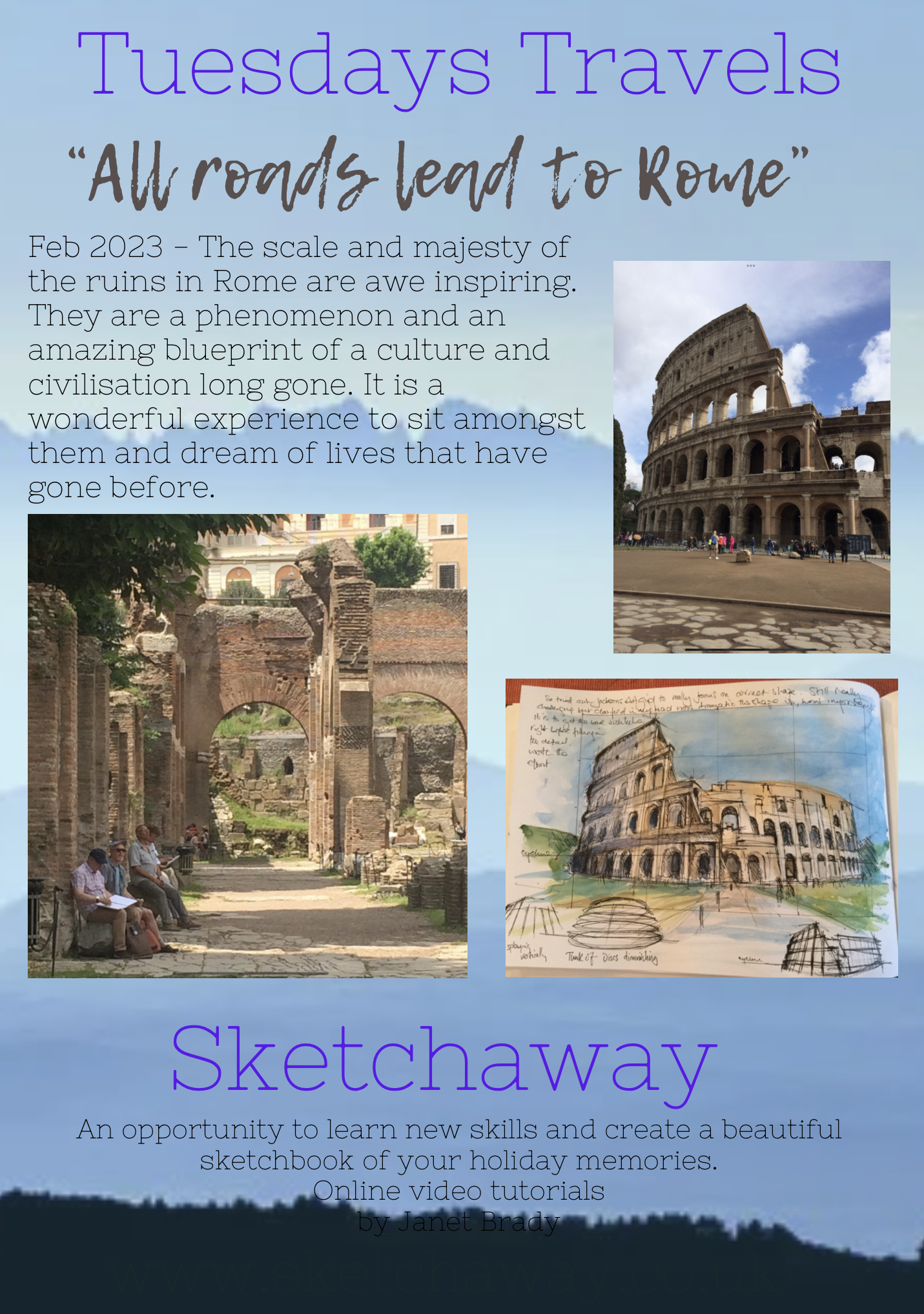 On a Tuesdays I like to share my experiences of sketching and painting in other countries. I’ve visited rome several times and enjoyed exploring every minute. It’s a feast of ancient ruins. The people are welcoming and fun, the food and wine delicious. It’s a big ask to capture it all in a sketch, however take little pockets and corners and it’s a delight. Find a little bit of shade, sit amongst centuries of ruins and capture the detail while soaking up the intense beauty.